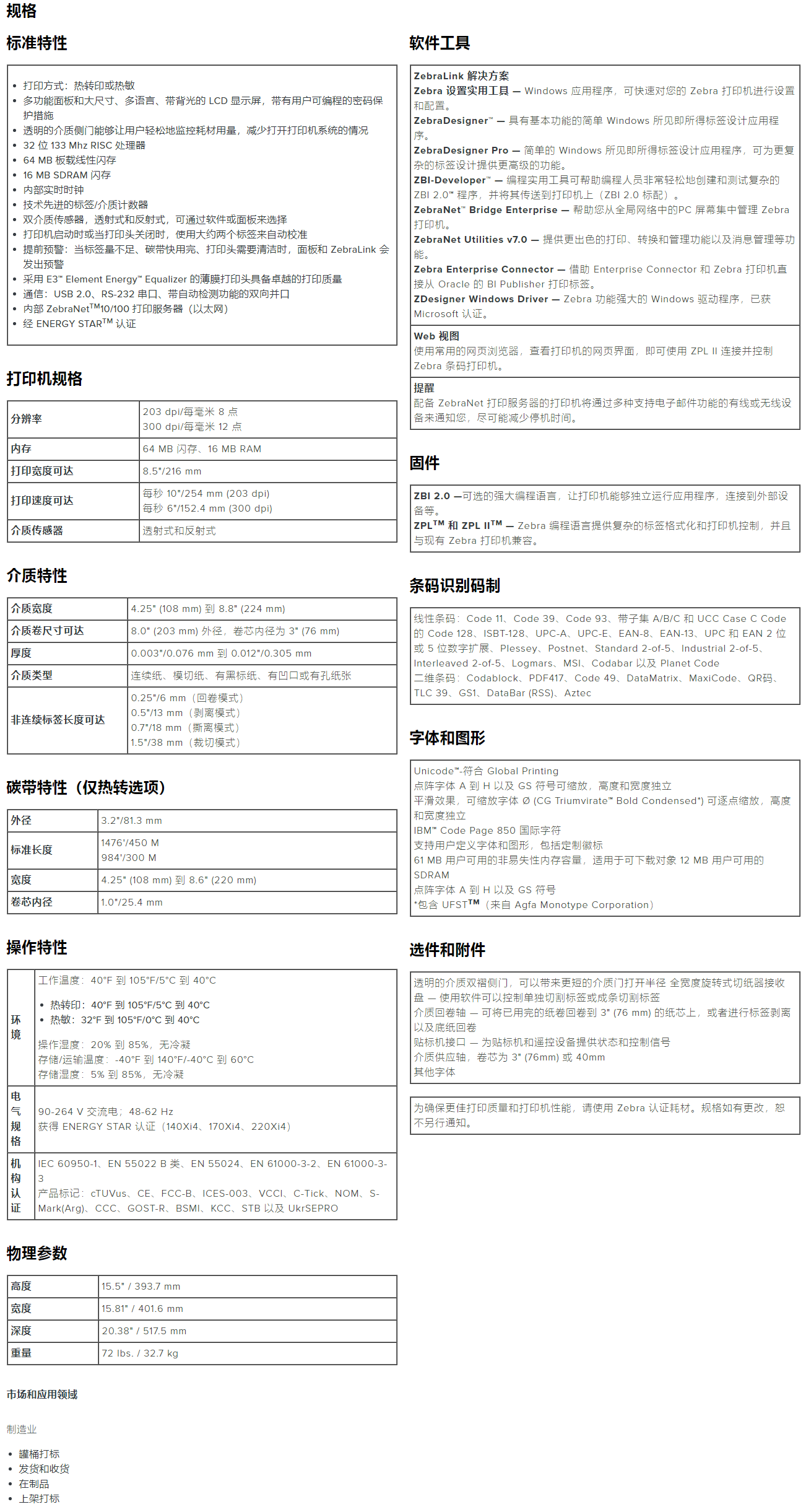 220XI4 工业打印机支持