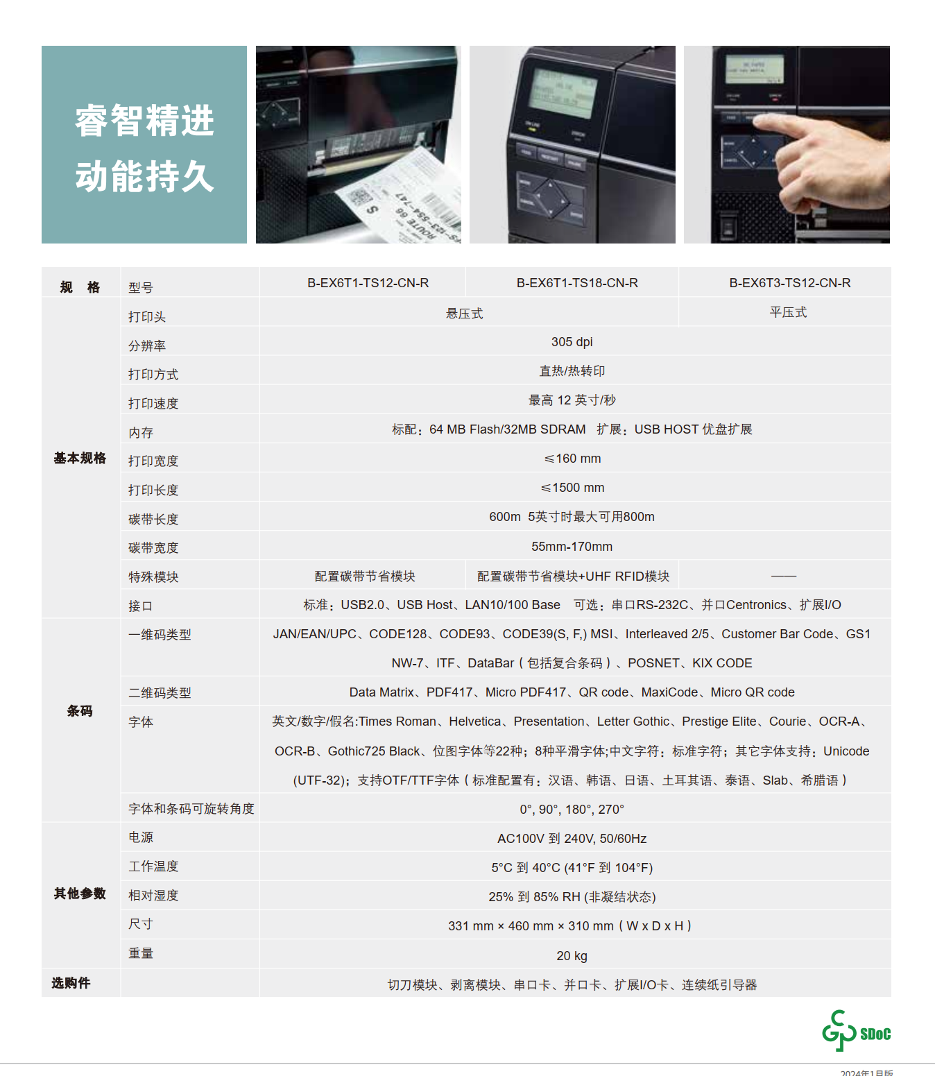 具有12IPS打印速度、结合先进的打印温度和步进控制技术,能满足各类标签打印的需求,悬压打印技术和碳带节省功能,能极大地降低客户使用成本,提升投资回报率。EX6T1坚固耐用,结合RFID及诸多人性化、智能化设计,提供宽幅工业标签打印应用。