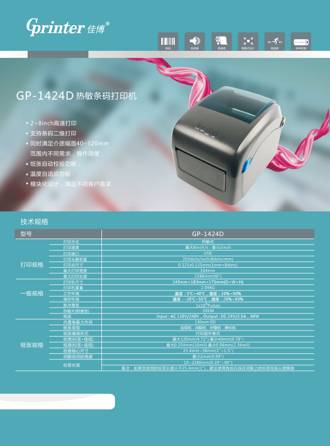 GP-1424D 热敏条码打印机